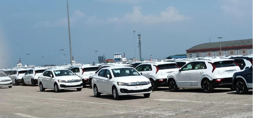 Photo: Junfeng vehicles being loaded onto a ship at the dock